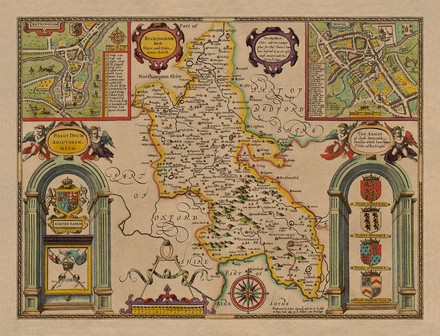 Old Map of Buckinghamshire in 1611 by John Speed: High Wycombe, Amersham, Buckingham, Milton Keynes, Aylesbury, Newport Pagnell