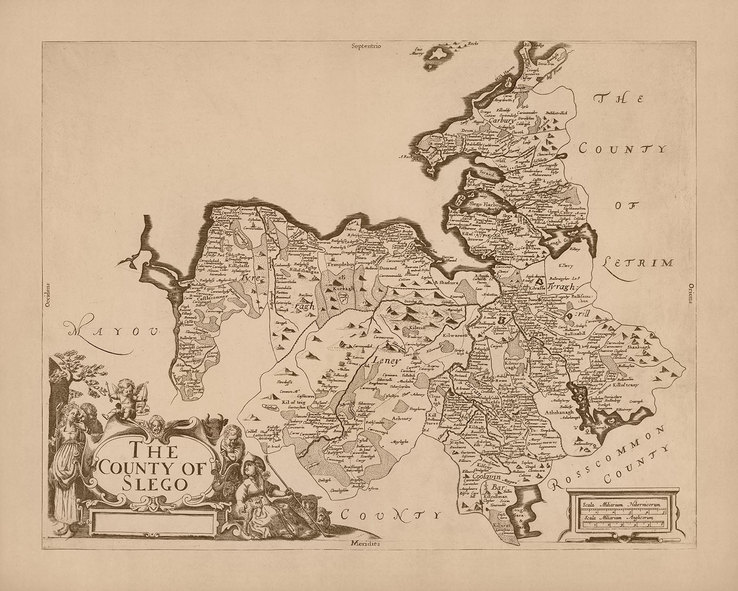 Old Map of County Sligo by Petty, 1685: Boyle, Knocknarea, Lough Gill, Benbulben, Ox Mountains