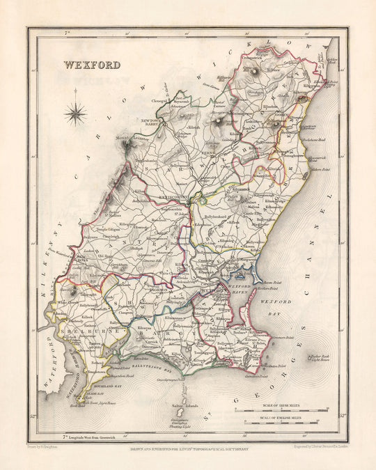 Owning the Old Map of Wexford by Samuel Lewis, 1844 allows you to delve into the past, explore the historical settlements, and appreciate the beauty and significance of County Wexford, Ireland.