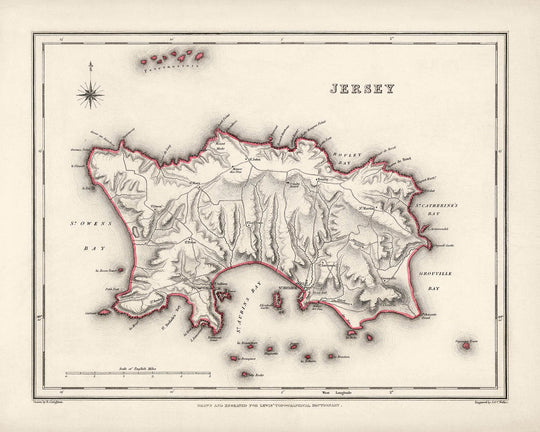 Embrace the allure of the past with the Old Map of Jersey by Samuel Lewis in 1844, a remarkable piece that brings history to life and celebrates the island's unique heritage.