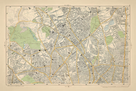 Sheet 6 from Bacon's New Large Scale Atlas of London and Suburbs, crafted in 1900, offers a captivating glimpse into North-Central London during a pivotal era of transformation. This map captures the delicate balance between the sprawling Victorian landmarks and the remnants of pastoral farmland. As you explore its intricacies, you'll discover the harmonious coexistence of urban development and natural beauty, with areas like Hampstead Heath and Finsbury Park providing verdant sanctuaries amidst the city's expansion.