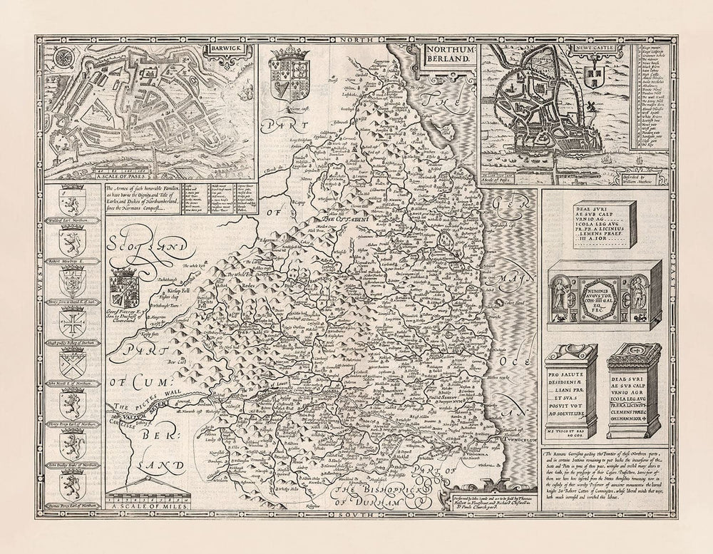 Old Map of Northumberland in 1611: Newcastle, Gateshead, Hadrian's Wall, South Shields, Tyne and Wear