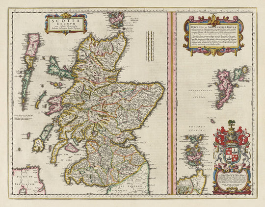 Old Map of Scotland, Shetland Isles and Orkney in 1654 by Joan Blaeu from the Theatrum Orbis Terrarum Sive Atlas Novus