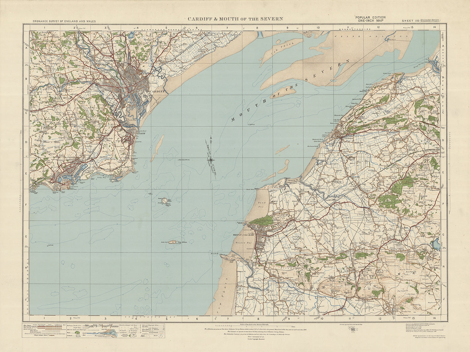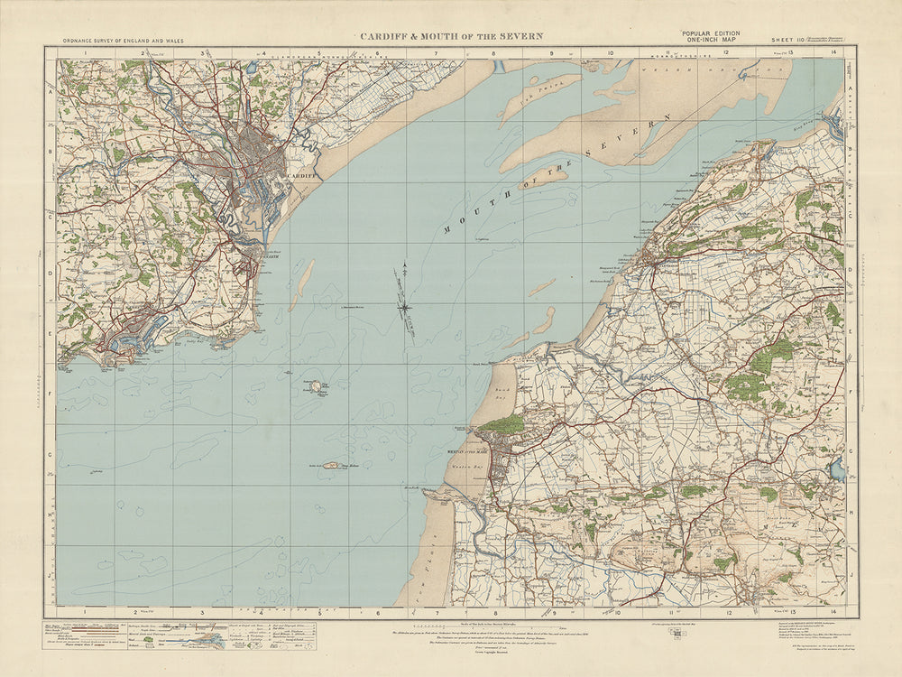 This old Ordnance Survey map, Sheet 110 - Cardiff & Mouth of the Severn, published in 1925, provides a fascinating glimpse into the past, showcasing the towns, cities, and natural features of the region. The map covers an area that includes Cardiff, the capital city of Wales, and the Mouth of the Severn, offering a unique perspective on the landscape and settlements of the time.