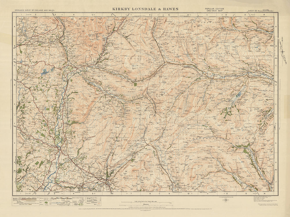 This old Ordnance Survey map, Sheet 20 - Kirkby Lonsdale & Hawes, is a fascinating historical artifact from 1925. It provides a detailed view of the region, including the towns of Kirkby Lonsdale and Hawes, as well as other notable settlements like Ingleton, Sedbergh, Askrigg, and the picturesque Yorkshire Dales National Park. The map offers a glimpse into the past, showcasing the landscape, boundaries, and features of the area during that time.