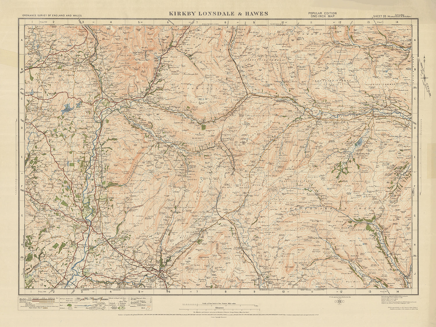 Old Ordnance Survey Map, Sheet 20: Kirkby Lonsdale & Hawes, 1925: Ingleton, Sedbergh, Askrigg, Yorkshire Dales National Park