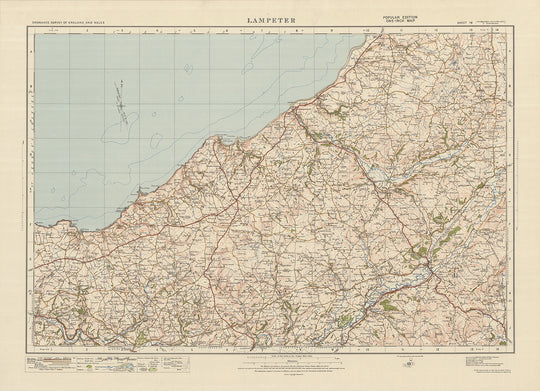 This old Ordnance Survey map, Sheet 78 - Lampeter, from the One-inch "Popular" edition, England and Wales, published in 1925, offers a fascinating glimpse into the past. The map showcases the historic county of Lampeter, situated in the heart of Wales, and features several notable towns, cities, and interesting landmarks.