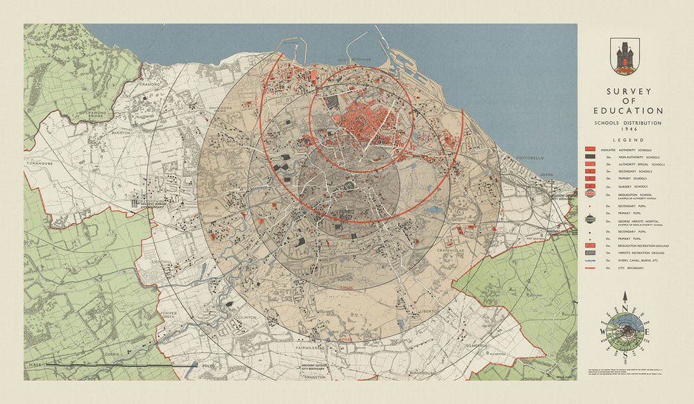 Old School Map of Edinburgh by Abercrombie, 1946: Authority & Non-Authority Education and Pupils