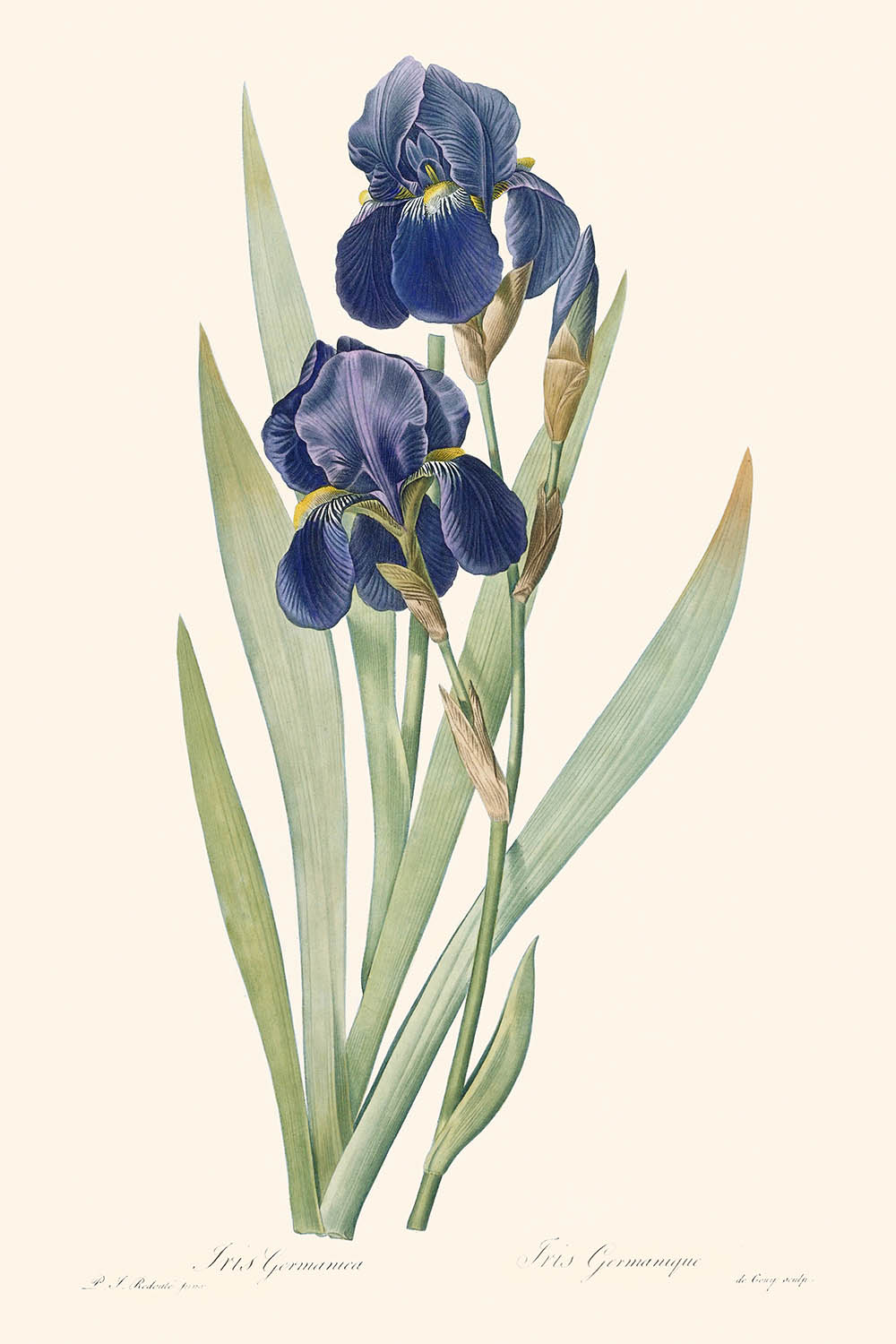 Iris Germanica Botanical Illustration by Pierre-Joseph Redouté, 1827