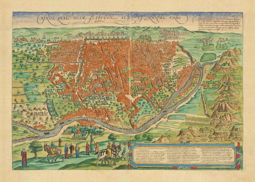 Published in 1572 by Georg Braun and Frans Hogenberg, this is the oldest full, true map of Cairo. If Shakespeare ever visited Cairo, this is what it would've looked like.