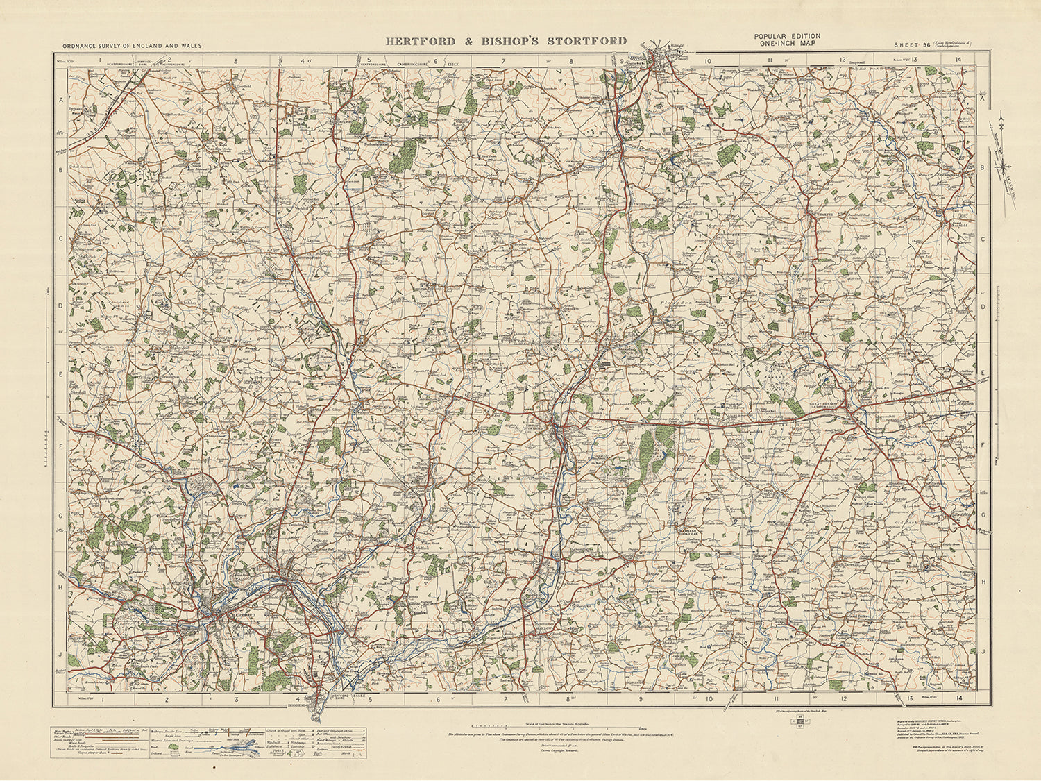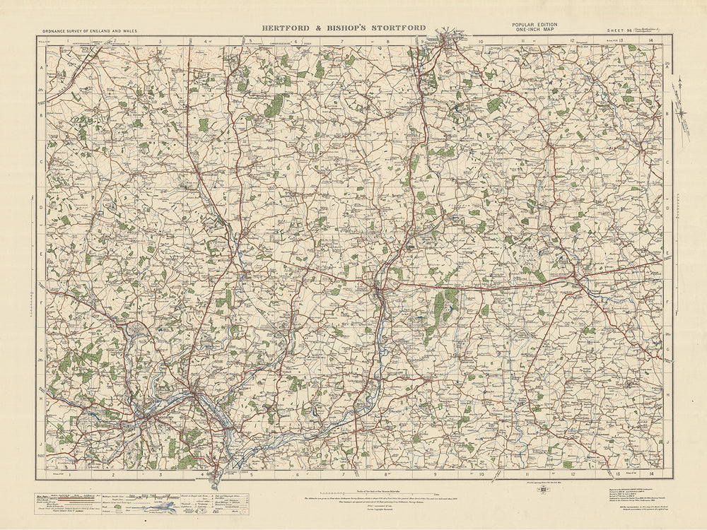 This meticulously crafted reproduction of the Ordnance Survey's One-inch "Popular" edition map, Sheet 96 - Hertford & Bishops Stortford, published in 1925, offers a captivating glimpse into the past. Featuring the historic towns of Hertford & Bishops Stortford, along with the notable settlements of Harlow, Saffron Walden, Ware, Hoddesdon, and Great Dunmow, this map serves as a valuable resource for history enthusiasts, cartography aficionados, and anyone seeking to explore the rich heritage of England and Wales.