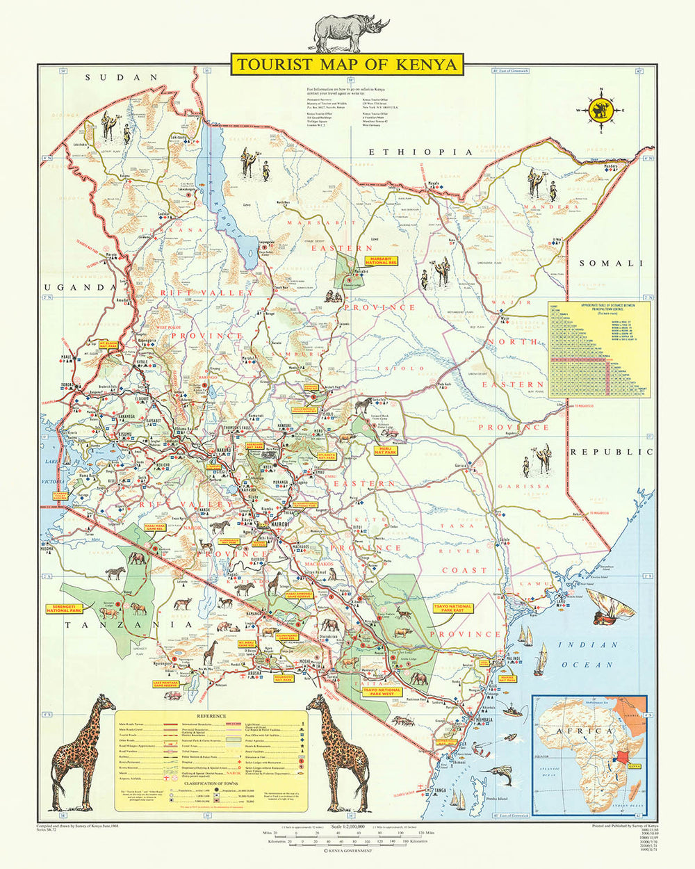 In conclusion, the "Tourist Map of Kenya" is more than a mere cartographic creation; it is a bridge connecting the past, present, and future. Crafted by the Survey of Kenya, this map encapsulates the spirit of a nation at a crossroads, eager to chart its own course while celebrating its rich heritage. It stands as a testament to the beauty and diversity of Kenya, beckoning travelers, historians, and dreamers to explore its landscapes, wildlife, and stories. This map is not just a guide but a treasure, a piece of history that continues to inspire and inform generations.
