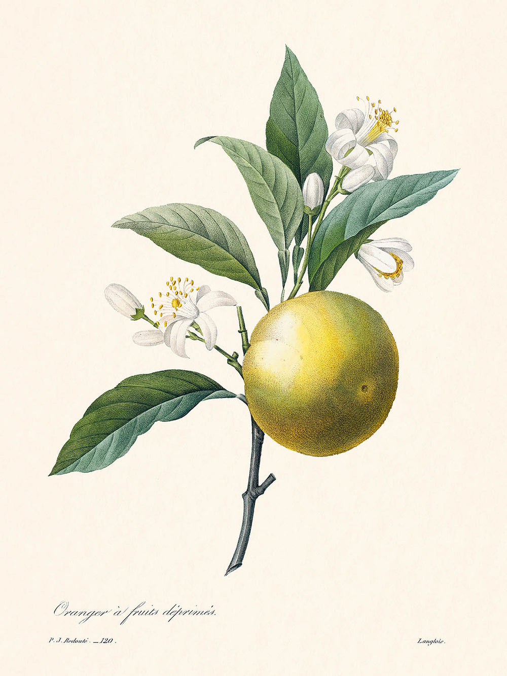 Orange Botanical Illustration by Pierre-Joseph Redouté, 1827