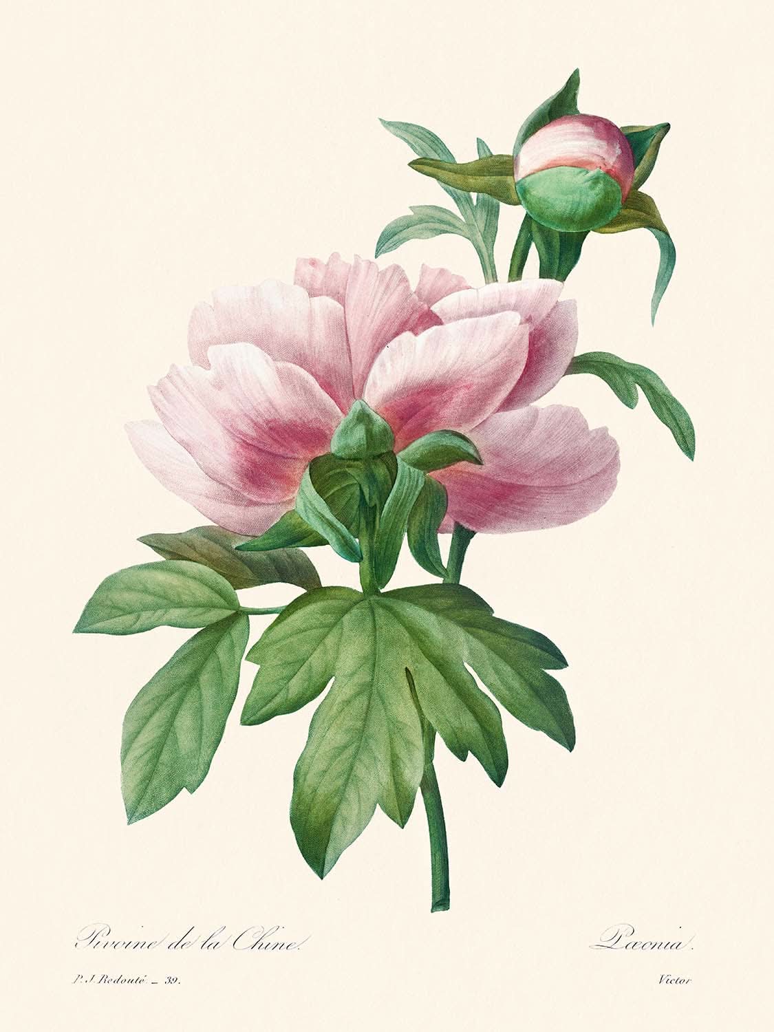 Pink Peony by Pierre-Joseph Redouté, 1802
