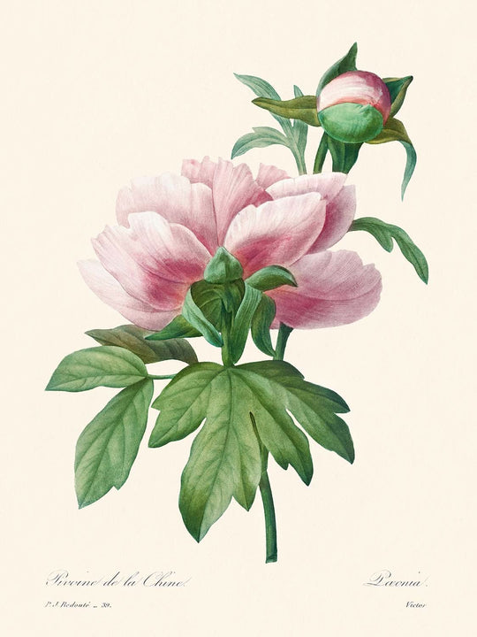 Pink Peony by Pierre-Joseph Redouté is a captivating botanical illustration that showcases the exquisite talents of one of history's most esteemed botanical artists. Born in Belgium, Pierre-Joseph Redouté became renowned for his ability to bring the natural world to life through his detailed and vibrant paintings. Notably, he spent significant time capturing the beauty of the flora at the Château de Malmaison under the patronage of Josephine Bonaparte, the wife of Napoleon.