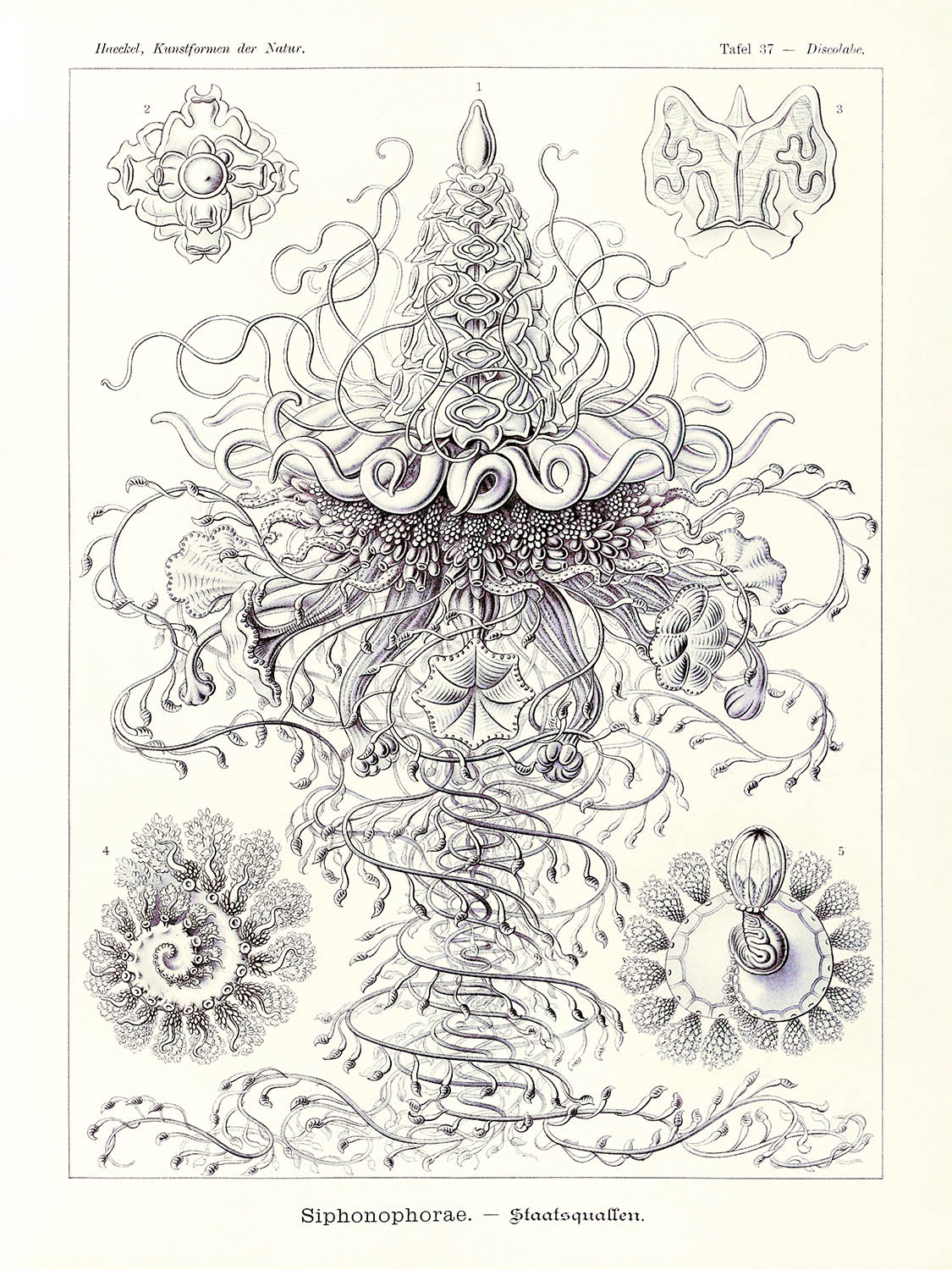 Viele Tentakelqualle (Siphonophorae Staatsquallen) von Ernst Haeckel, 1904