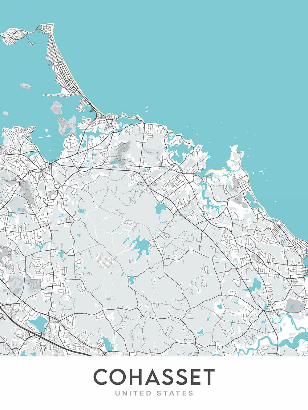 Diese Karte von Cohasset, Massachusetts, ist ein modernes Wunder der Kartographie und des Designs. Diese Karte wurde 2024 von The Unique Maps Co. erstellt und ist ein Muss für jeden, der moderne Kunst, Innenarchitektur oder Geografie liebt. Die Karte konzentriert sich auf die Stadt Cohasset und die umliegenden Gebiete und bietet eine komplexe und visuell beeindruckende Darstellung dieser wunderschönen Region.