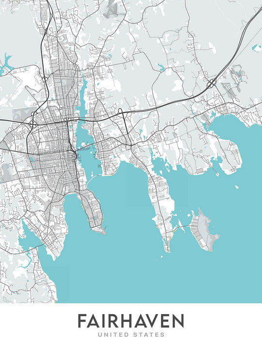 Diese Fairhaven-Karte ist eine moderne, detaillierte Straßenkarte mit Schwerpunkt auf Ästhetik und Innenarchitektur. Es ist ein Kunstwerk, kein Navigationsinstrument. Die Karte deckt ein großes Gebiet ab, einschließlich des Stadtzentrums, der umliegenden Städte und der Hauptstraßen. Es zeichnet sich durch einzigartige Kartografie, modernes Design und eine einzigartige Farbpalette aus und ist somit eine attraktive Ergänzung für jedes Zuhause oder Büro.