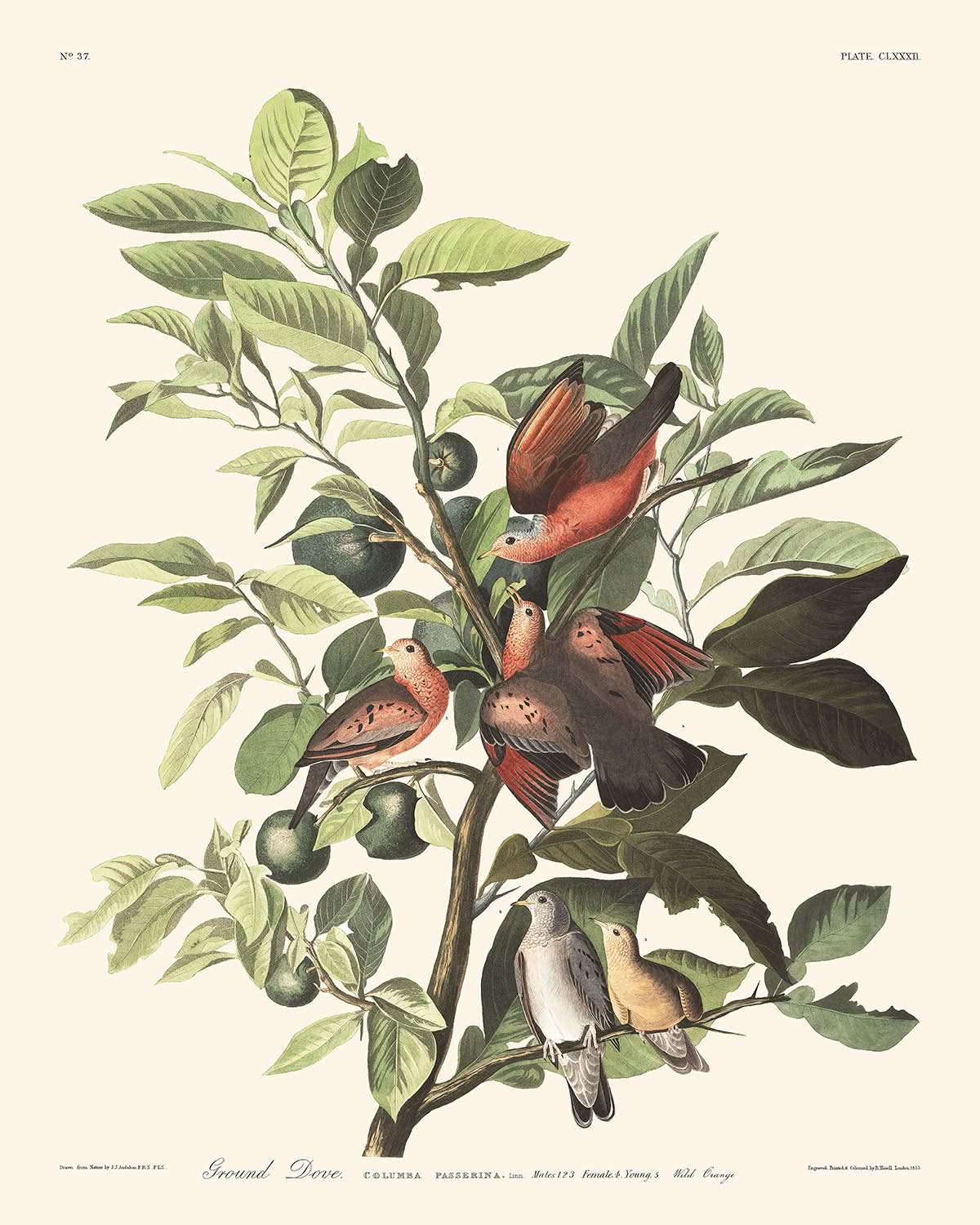 Die Erdtaube (Tafel 182), illustriert vom berühmten John James Audubon, ist eine fesselnde Illustration aus seinem monumentalen Werk „The Birds of America“, das erstmals 1827 veröffentlicht wurde. Diese exquisite Darstellung der Erdtaube fängt das Wesen dieser Art mit bemerkenswerter Detailliertheit ein und zeigt Audubons tiefe Kunstfertigkeit und Hingabe bei der Darstellung der amerikanischen Vogelwelt.