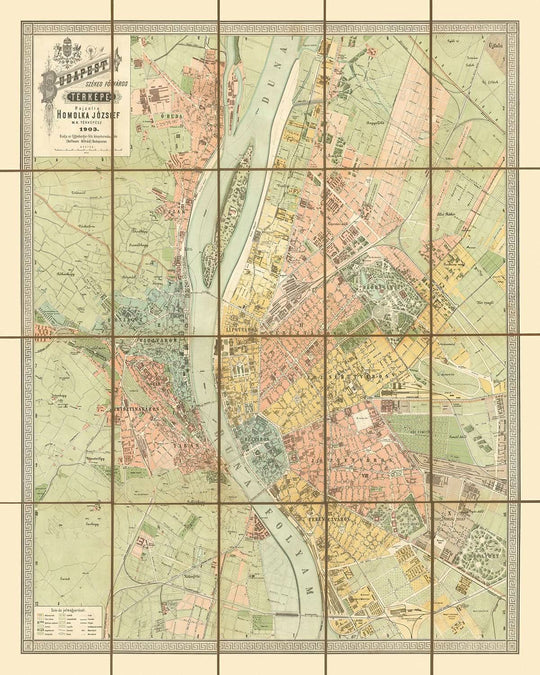 Die Karte von Jozsef Homolka ist nicht nur eine kartografische Leistung, sondern auch ein historisches Dokument, das den Geist Budapests in einem entscheidenden Moment seiner Geschichte einfängt. Die Liebe zum Detail und das künstlerische Flair machen sie zu einem Muss für Sammler und Liebhaber historischer Karten. Diese Karte dient als Fenster in die Vergangenheit und bietet Einblicke in die Geografie, Architektur und kulturellen Sehenswürdigkeiten der Stadt, was sie zu einem wirklich bemerkenswerten Stück Geschichte macht.