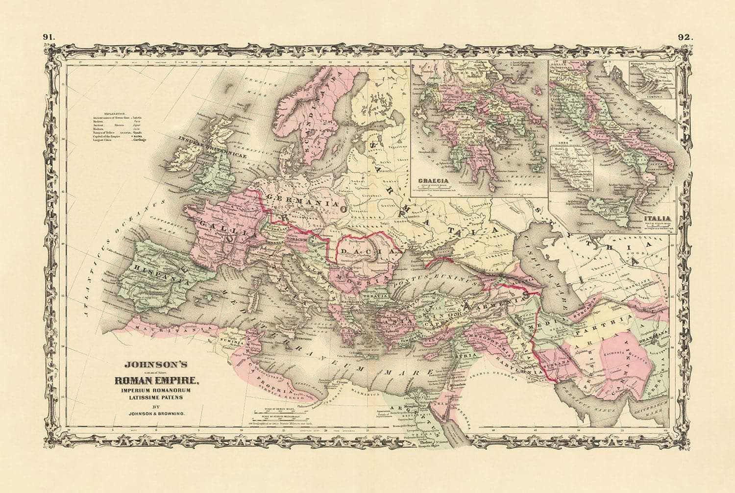 Alte römische Reichskarte von Europa, Afrika und Asien von Johnson und Browning: Historische Karte des Byzantinischen Reiches