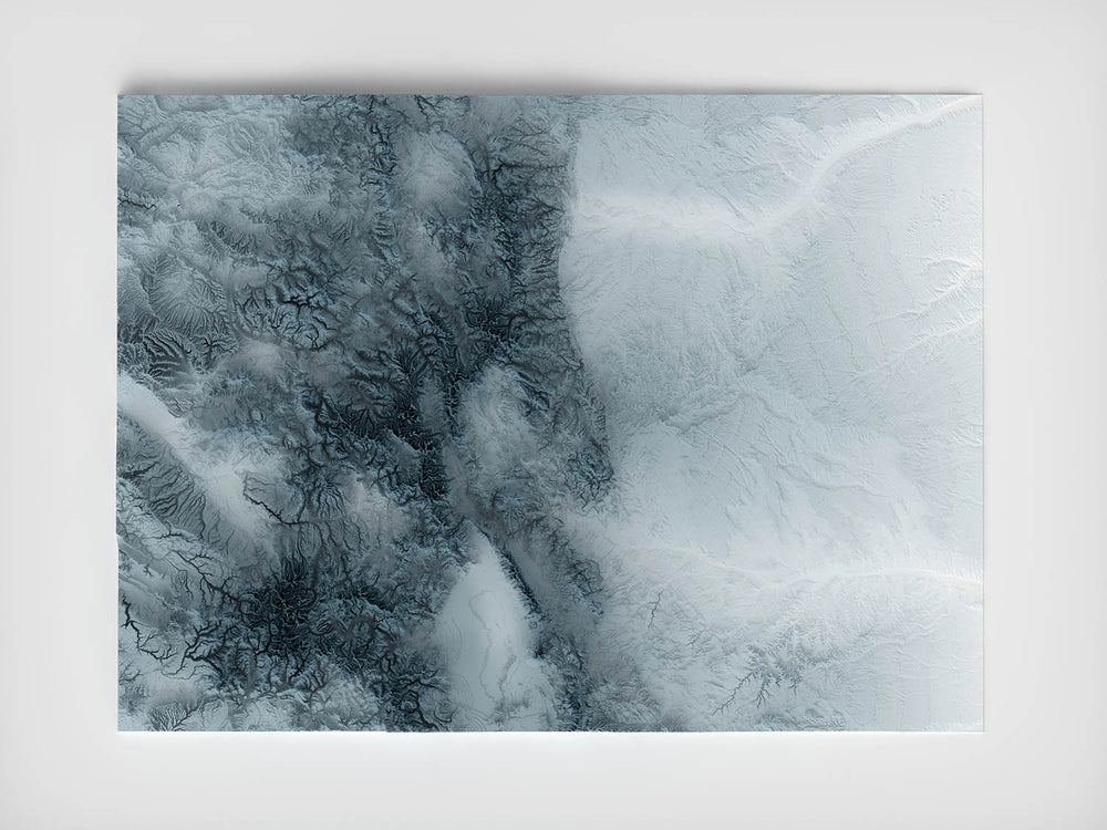 Unsere schattierten Reliefdrucke verwenden hochauflösende topografische Daten und einen geheimen 3D-Rendering-Prozess, um die Illusion von erhöhtem Terrain zu erzeugen – als würden die Berge gleich von der Seite abheben. Keine Beschriftungen, keine Grenzen, keine Ablenkungen. Nur die rohe Form des Landes, in einem klaren, modernen Stil zum Leben erweckt.