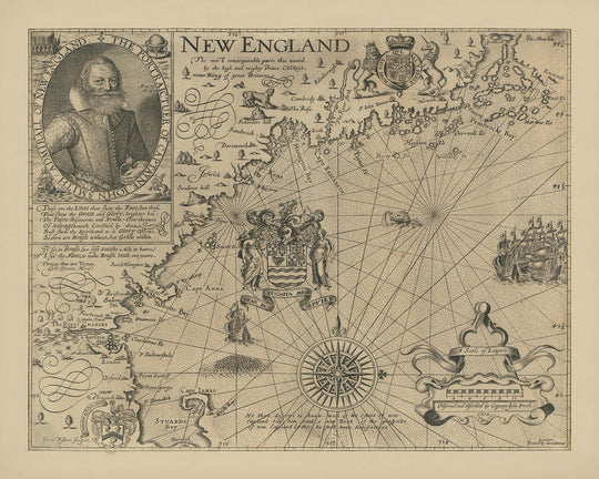 - Führte den Namen "Neuengland" ein und enthielt Ortsnamen, die von Charles, Prinz von Wales (später Charles I.), bereitgestellt wurden