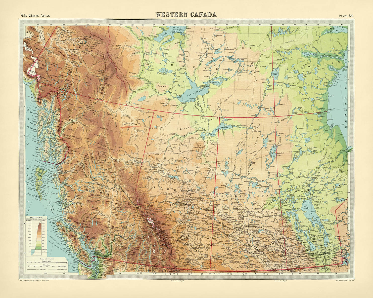 - Ursprünglicher Kartentitel: Westkanada (1922), erstellt von John George Bartholomew