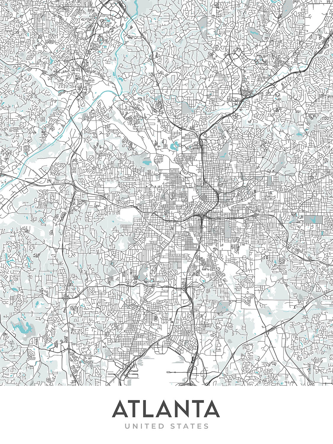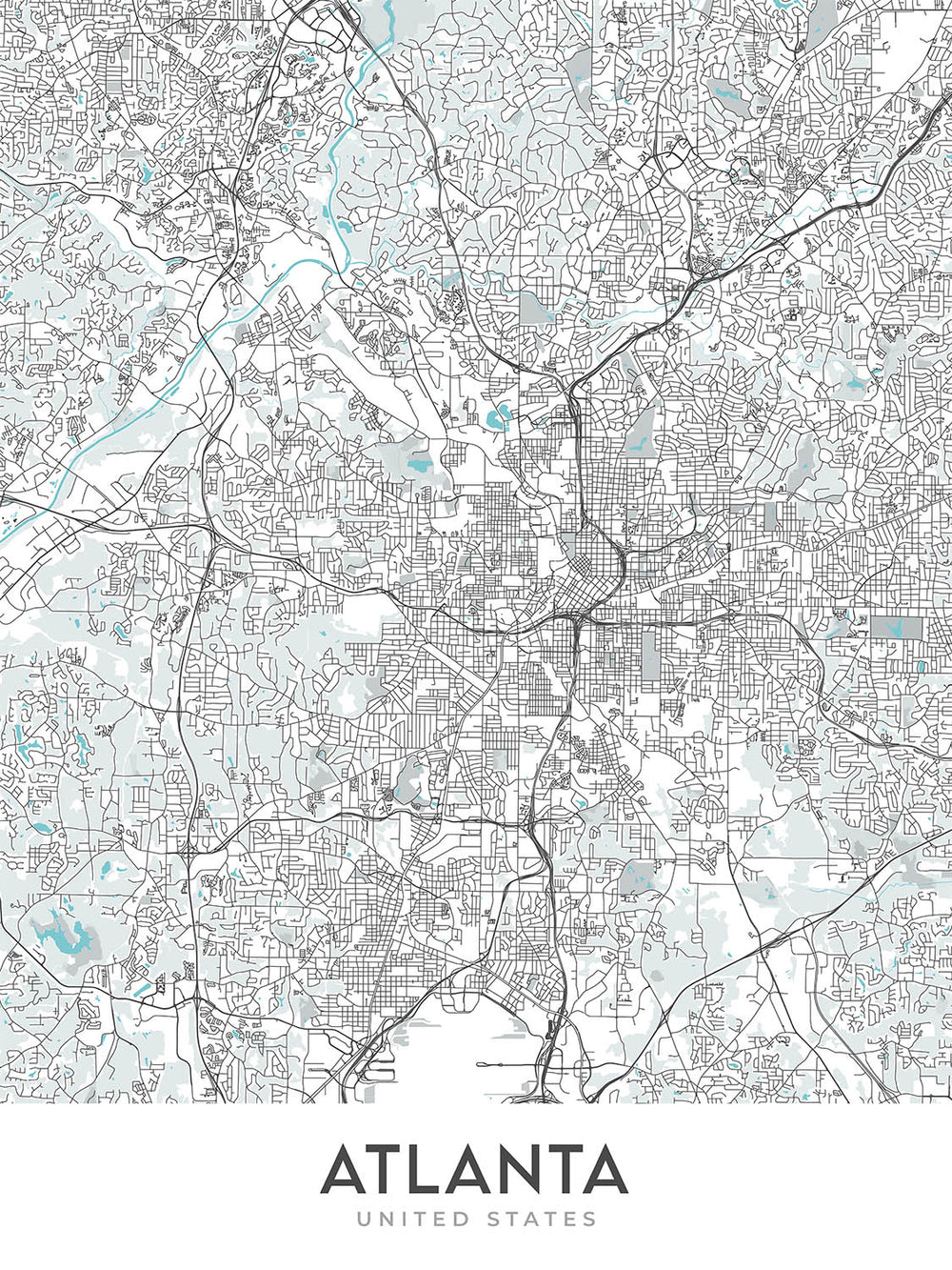 Diese Karte von Atlanta ist nicht nur ein dekoratives Stück; sie ist ein Tor zur Erkundung der lebendigen Viertel der Stadt, ikonischen Sehenswürdigkeiten und umliegenden Gebiete. Egal, ob Sie ein Einheimischer, ein häufiger Besucher oder einfach jemand mit einer Vorliebe für schöne Karten sind, dieses Werk von The Unique Maps Co. wird sicherlich fesseln und inspirieren.