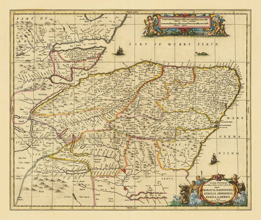 Alte Karte von Aberdeen, Inverness, Moray & Angus, 1690: Dundee, Perth, Fraserburgh, Loch Ness, Schottische Highlands