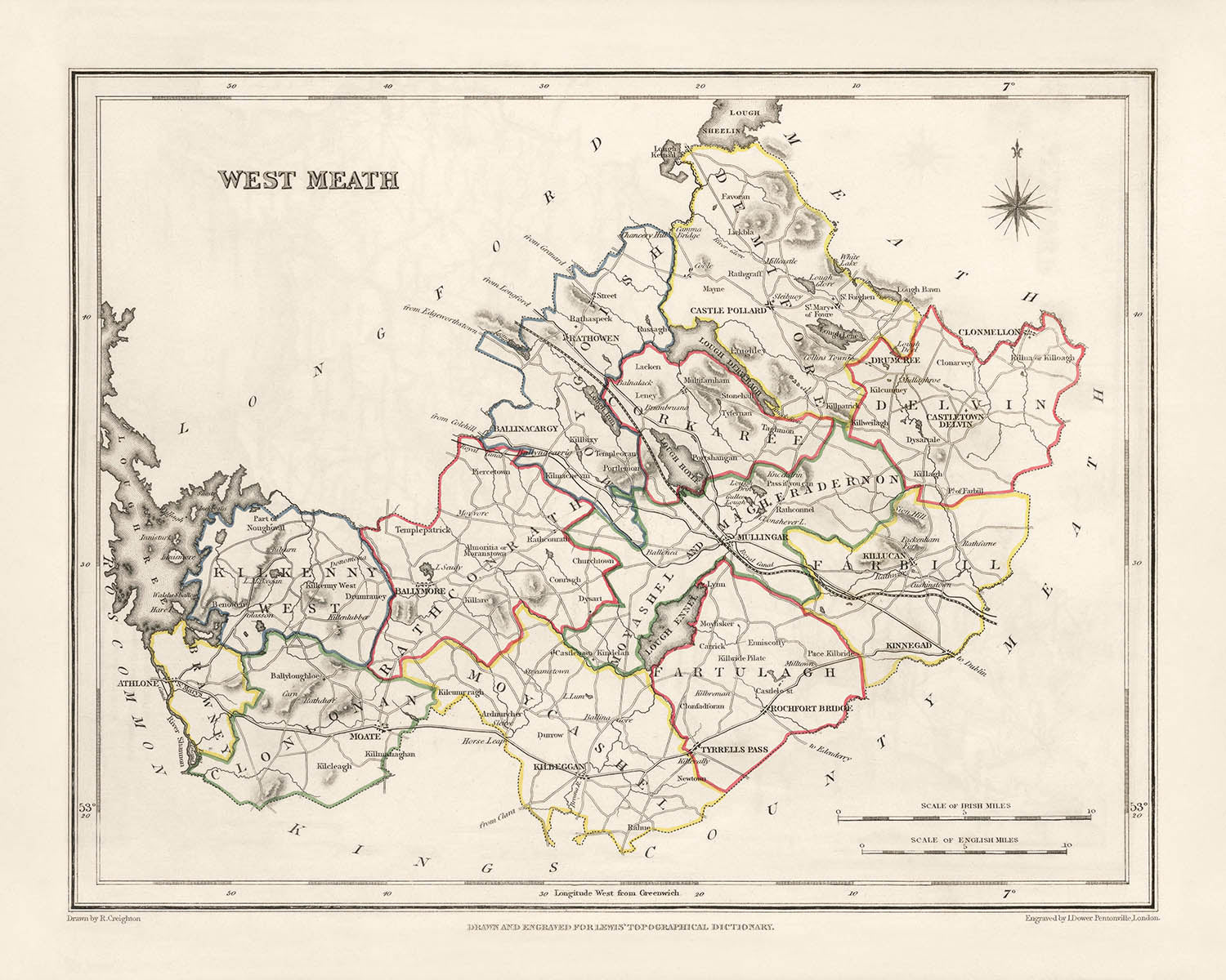 Diese Karte misst [Abmessungen einfügen] und zeigt die historischen Grenzen der Grafschaft Meath, Irland, wie sie im Jahr 1844 waren. Sie bietet eine faszinierende Perspektive auf die Landschaft, Städte und Sehenswürdigkeiten der Region während dieser Zeit. Auch wenn einige moderne Städte möglicherweise nicht auf dieser Karte aufgeführt sind, ist sie eine spannende Gelegenheit, frühere Namen bestehender Orte zu entdecken oder Siedlungen zu erkunden, die sich im Laufe der Zeit entwickelt haben.