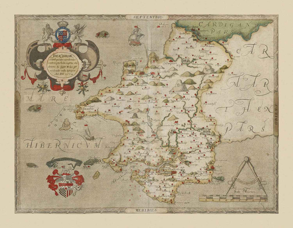 Wenn Sie nach etwas etwas anderem suchen, wäre eine weitere Option diese erstaunliche Karte von Pembrokeshire von John Speed aus dem Jahr 1611.