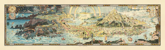 Auf dieser Karte passiert eine Menge. Ich empfehle, in die detaillierten Bilder hinein zu zoomen, um es sich anzusehen. Aber um dir eine Vorstellung zu geben... du kannst das Grab von König Arthur besuchen oder mit Herkules sprechen. Da ist das Schloss von Cinderella, Avalon und das Haus von Peter Pan. Valhalla und Asgard sind in der Ferne. Feen, Wassermänner und Nixen schmücken die Karte. Alles in allem ein erstaunliches Kunstwerk.