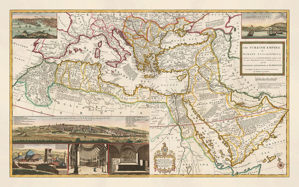 Diese Meisterkarte des Osmanischen Reiches wurde 1714 von Herman Moll, dem besten englischen Kartographen und Kartenmacher des 18. Jahrhunderts, erstellt.