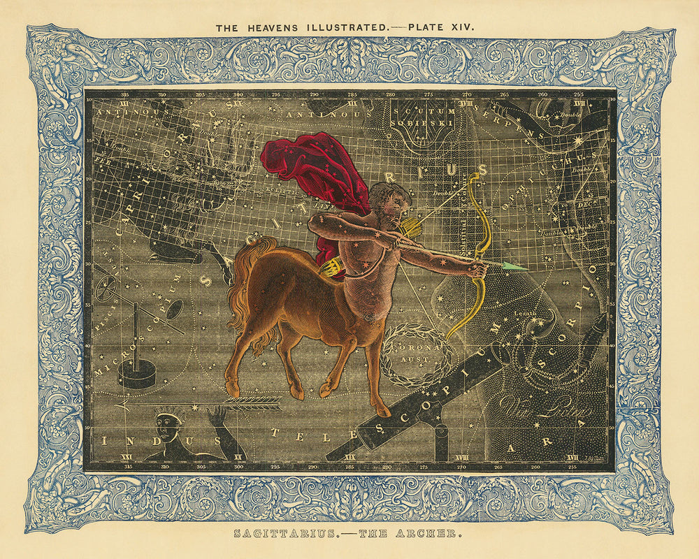Wir bieten stolz einen außergewöhnlich hochwertigen Kunstdruck von "Schütze, der Bogenschütze" an, der sorgfältig von The Unique Maps Co. restauriert und vorbereitet wurde. Jedes Stück wird auf wunderschön dickem, archivierbarem mattem Papier gedruckt, was sicherstellt, dass der Druck für Jahrzehnte lebendig und makellos bleibt. Darüber hinaus können Sie dieses Kunstwerk personalisieren und anpassen, um es einzigartig zu machen.