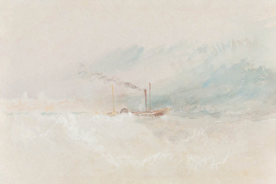 Turner, gefeiert als einer der einflussreichsten englischen romantischen Künstler, war bekannt für seinen innovativen Einsatz von Farbe und Licht. "Ein Paketboot vor Dover" veranschaulicht Turners Fähigkeit, das Zusammenspiel von Himmel und Meer einzufangen, indem er Töne von Weiß, Beige und tiefem Blau in eine lebendige und atmosphärische Komposition mischt. Seine Techniken zur Darstellung der Bewegung von Wolken und Wellen faszinieren weiterhin Kunstliebhaber und machen diesen Druck zu einer wertvollen Ergänzung jeder Sammlung.