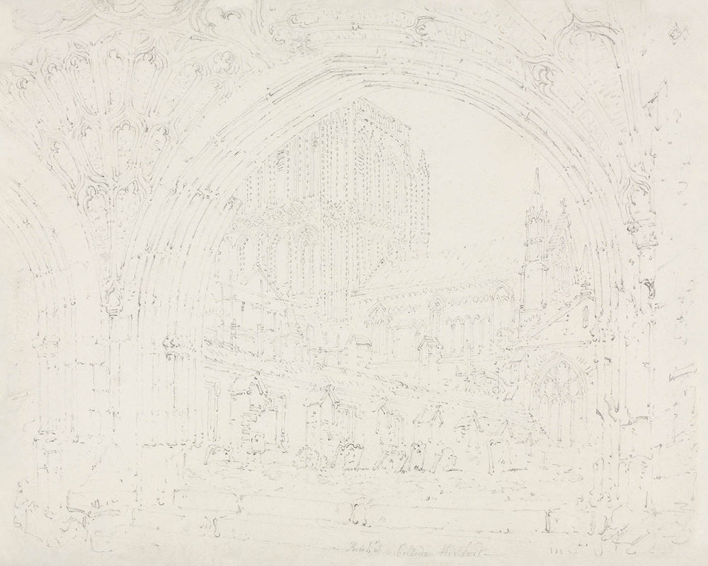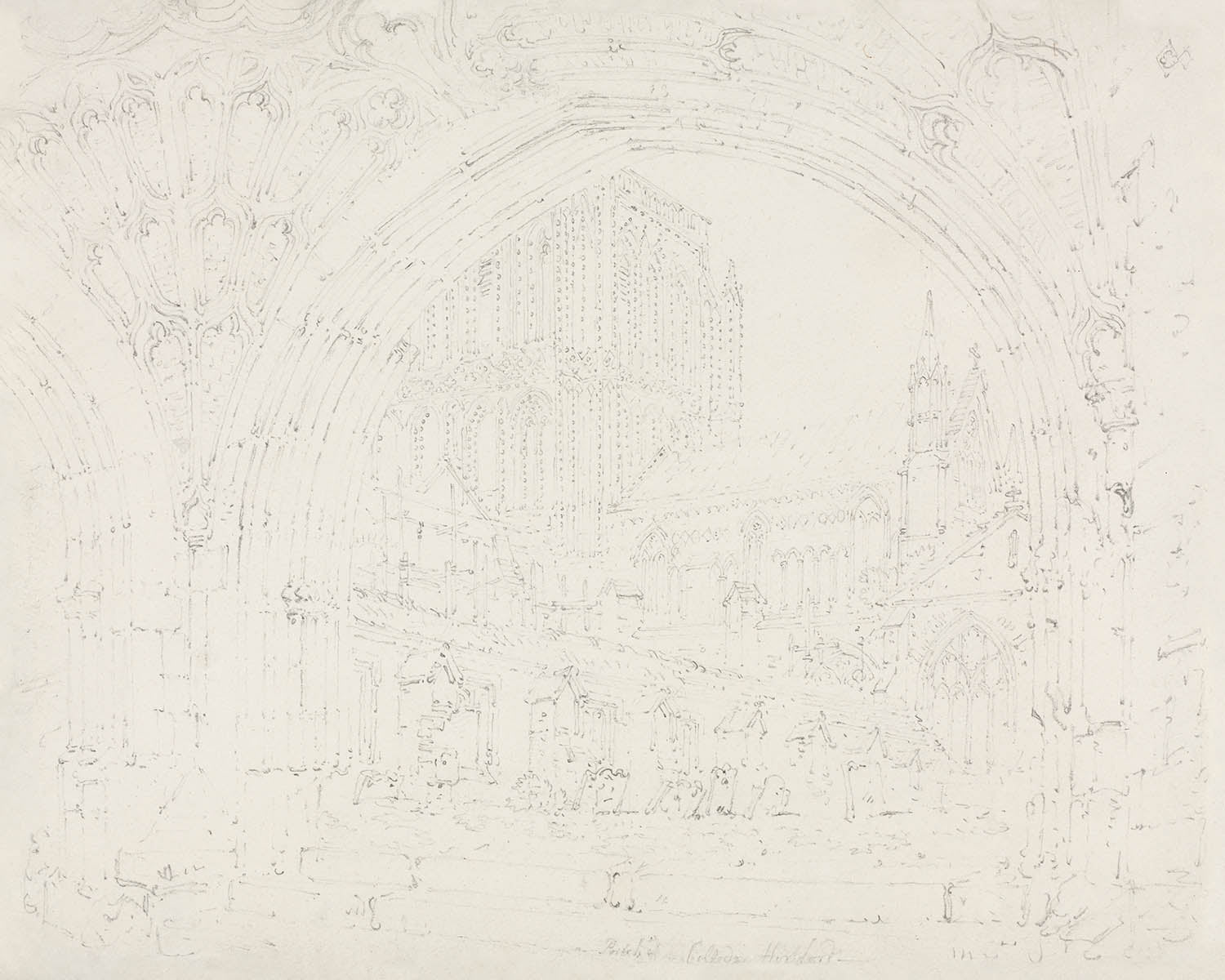 Hereford Cathedral itself carries centuries of cultural memory, and Turner’s choice of subject speaks to the era’s renewed fascination with the Middle Ages. Romantic artists and antiquarians alike saw Gothic architecture as a vessel of national identity and spiritual grandeur. In this work, Turner captures that lineage without fuss or ornament, letting the cathedral’s vaults and tracery suggest resilience, aspiration, and time’s slow passage.