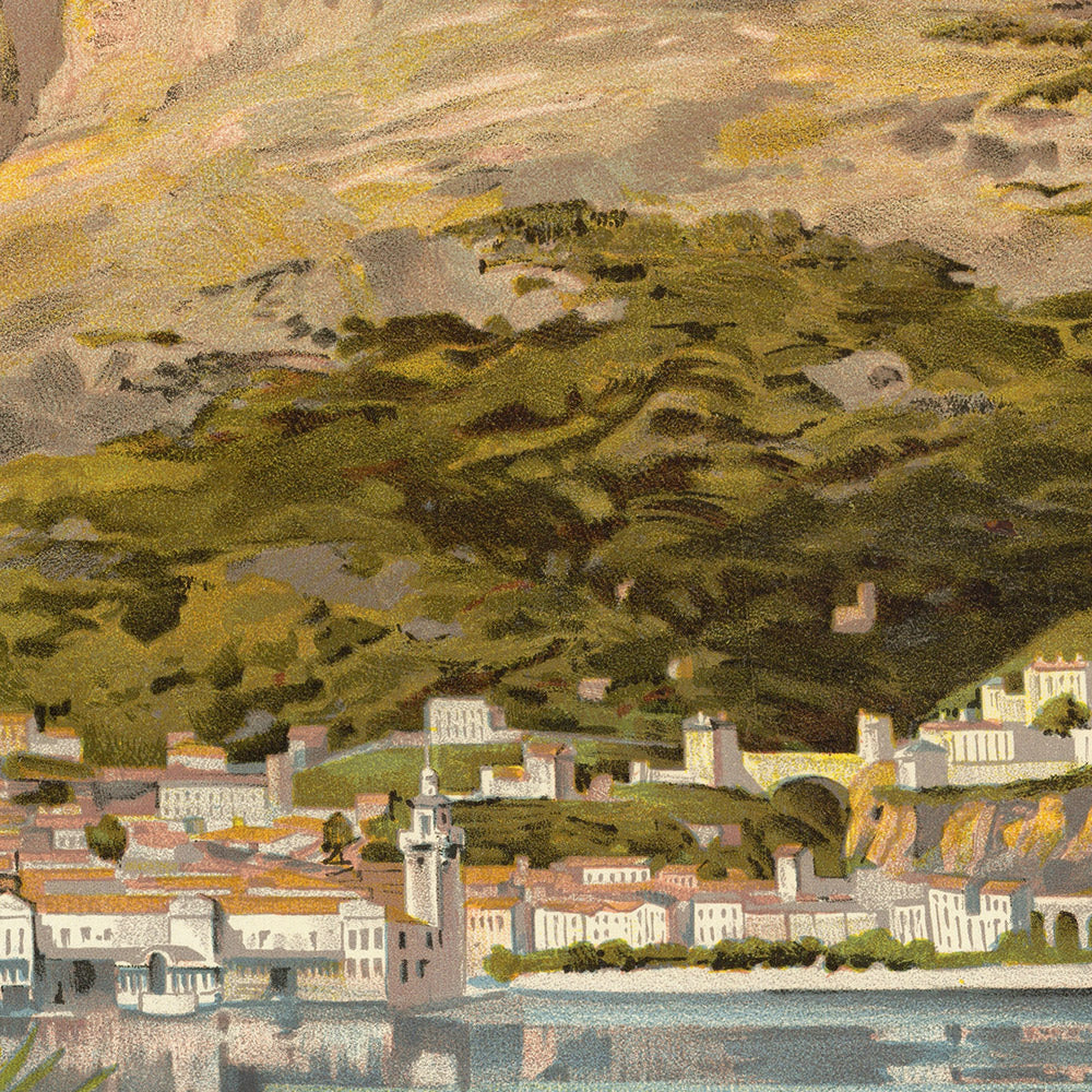 Why this poster matters: In the late 19th century, railways unlocked swift, comfortable access to the Riviera. P.L.M. positioned Monaco as an effortless escape—cosmopolitan, cultivated, and uniquely temperate—hence the promise of “Bains de mer d’Été & d’Hiver.” The design embodies that message: the circular view suggests a window onto leisure, while the framing florals and refined lettering merge commercial clarity with decorative sophistication. It’s a quintessential artifact of European travel culture at the moment tourism blossomed into a modern phenomenon.