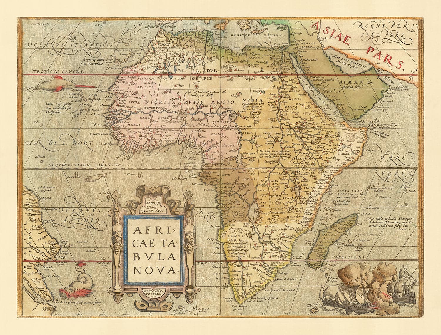Dies ist die beste und legendärste Karte des afrikanischen Kontinents aus dem 16. Jahrhundert. Eine Muss-Ergänzung zu jedem Sammler der Weltkarten.
