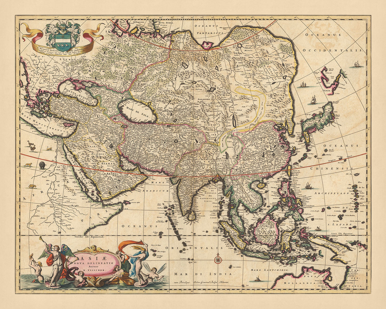 Alte Karte von Asien von Visscher, 1690: Naher Osten, Ostasien, Zentralasien, Südasien, Südostasien