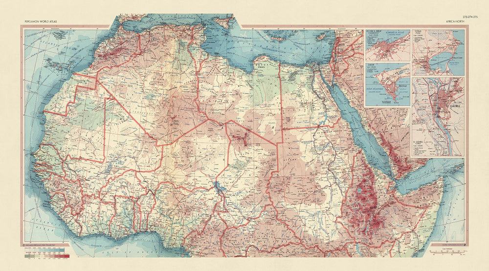 Alte Karte von Nord- und Westafrika, 1967: Marokko, Ägypten, Sudan, Sahara, Senegal, Nigeria