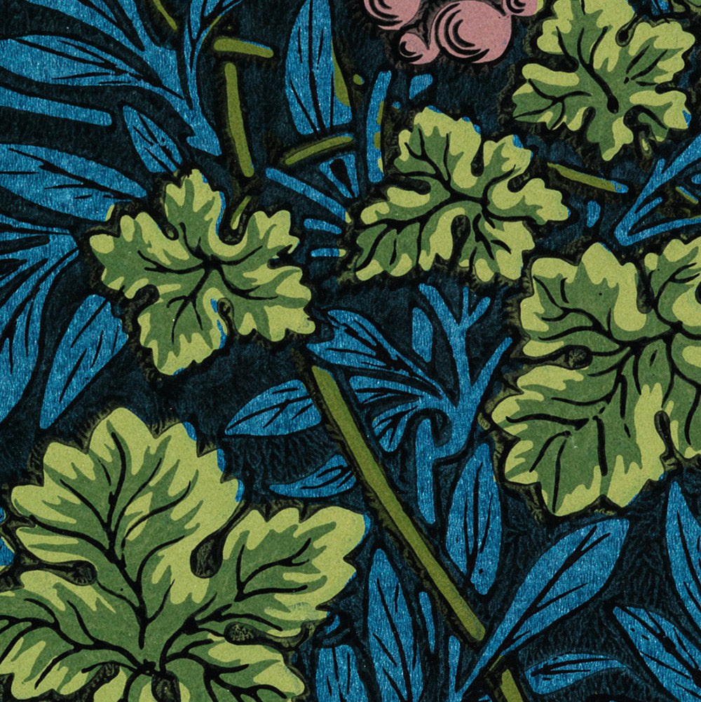 Grape Vine & Leaves by William Morris (1873) is a richly orchestrated decorative pattern from the heart of the British Arts & Crafts movement. Conceived at a time when designers sought to reconnect everyday life with handcraft and nature, the design entwines grape clusters and curling tendrils in a lyrical repeat that feels both timeless and modern. Created during Morris’s most prolific years, this motif carries the elegance and integrity that made Morris & Co. a byword for fine wallpapers and textiles.