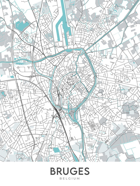 Diese Karte von Brügge, Belgien, ist ein modernes Wunderwerk der Kartografie. Es handelt sich um eine detaillierte Straßenkarte, die sich auf die moderne Stadtlandschaft mit ihrem komplexen Netzwerk aus Straßen, Alleen und Boulevards konzentriert. Die Karte umfasst auch die umliegende Landschaft und bietet einen umfassenden Überblick über die Stadt und ihre Umgebung. Die Karte ist mit ihren lebendigen Farben und komplexen Details eine Augenweide. Sie wird in jedem Zuhause oder Büro garantiert für Gesprächsstoff sorgen.
