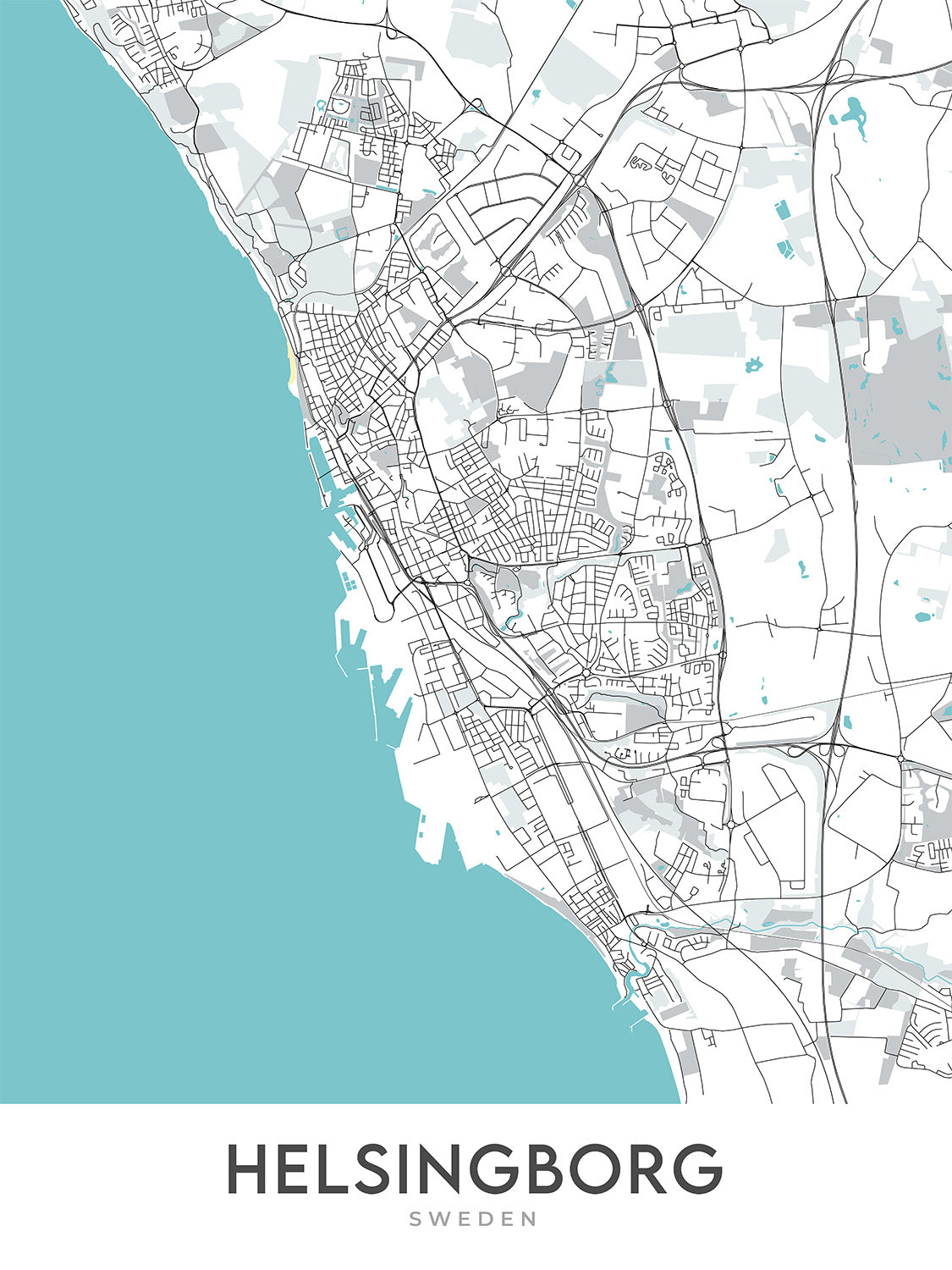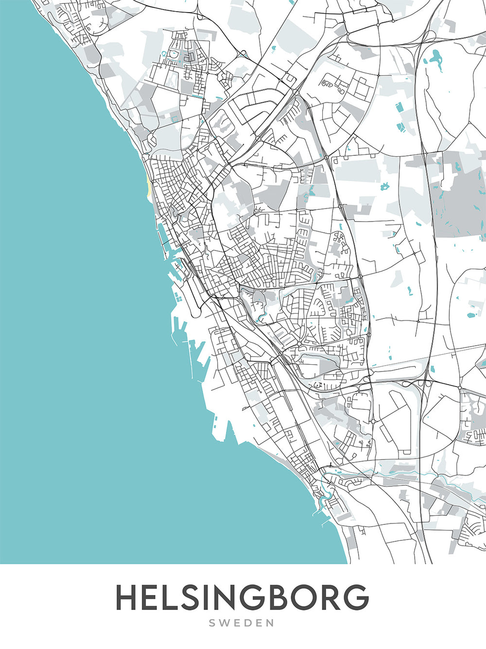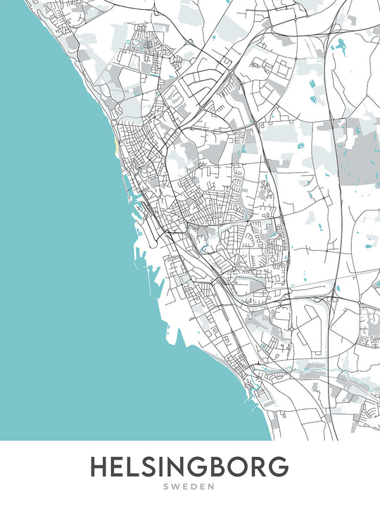 Diese Karte von Helsingborg, Schweden, ist ein modernes Meisterwerk, das die Essenz des skandinavischen Designs einfängt. Die Karte konzentriert sich auf die lebhaften Viertel, Hauptstraßen und Wahrzeichen der Stadt und ist daher ein Muss für jeden Liebhaber moderner Kartografie.