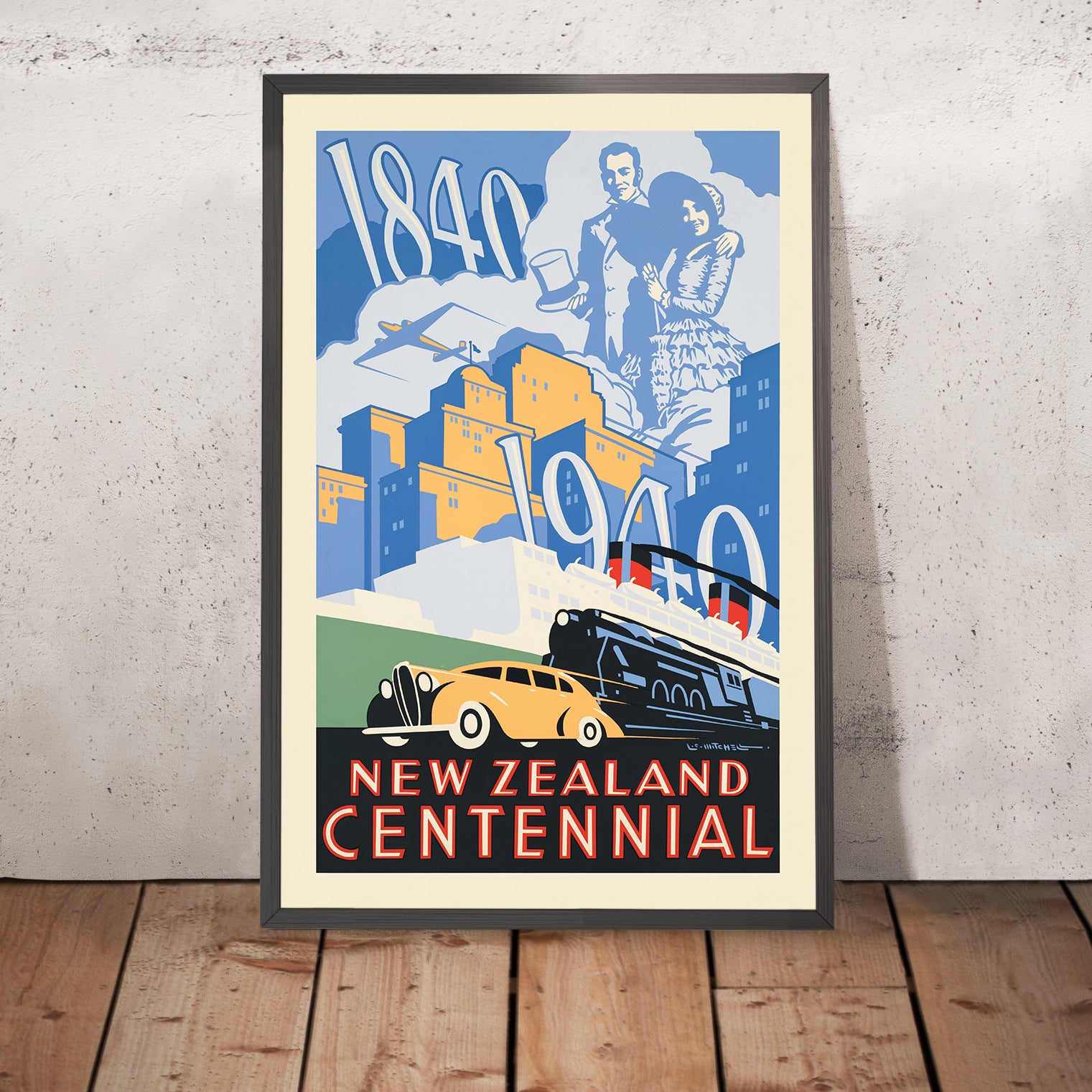 This 1940 design marks the national centenary and nods to the events of 1840, the foundational year associated with the Treaty of Waitangi. In a single, well-orchestrated scene, it layers people, landscape, and technology to tell a story of transformation. For collectors of New Zealand memorabilia, mid-century design enthusiasts, and anyone with roots or memories in Aotearoa, it is an instantly recognizable emblem of the era’s optimism and forward motion.