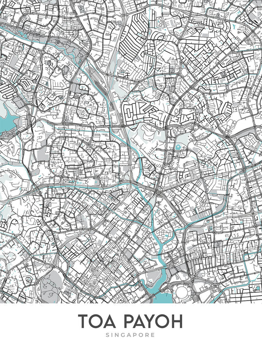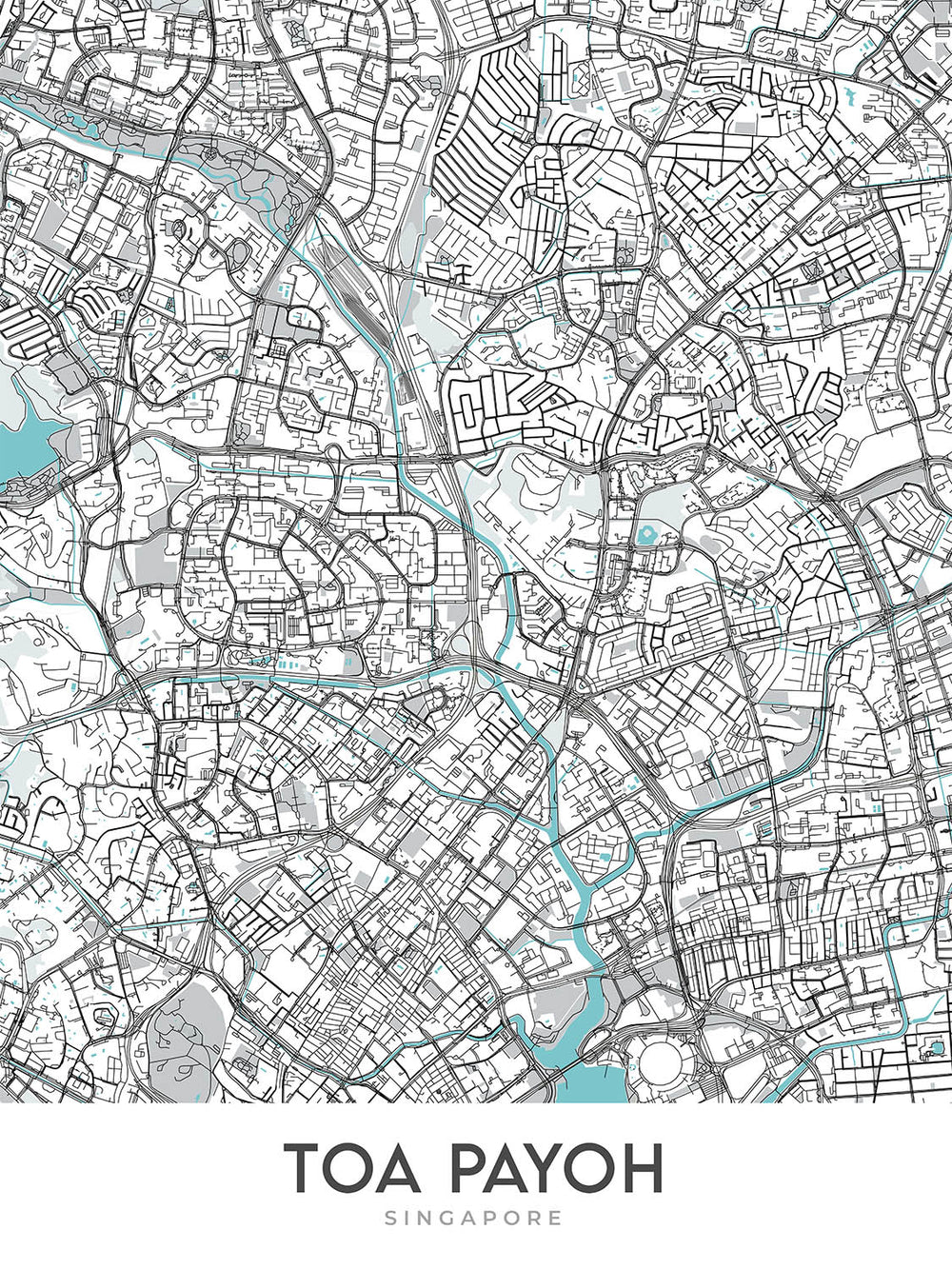 Ubicado dentro de la vibrante ciudad-estado insular de Singapur, el vecindario de Toa Payoh sirve como punto focal de este mapa exquisitamente detallado. Reconocida por su rica combinación de cultura y modernidad, Toa Payoh ofrece una visión única de las facetas históricas y contemporáneas de la vida urbana de Singapur. El mapa captura la esencia de esta bulliciosa zona, destacando su intrincada red de carreteras, monumentos destacados y exuberantes espacios verdes. Proporciona no sólo una representación visual sino también una interpretación artística del diseño del área, lo que la convierte en una pieza fascinante para aquellos interesados en las sutilezas del diseño urbano y la arquitectura.