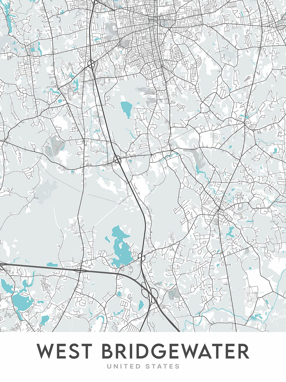 El mapa de West Bridgewater es un mapa moderno y detallado de las calles de la ciudad de Bridgewater en Massachusetts, creado por The Unique Maps Co. en 2024. El mapa cubre una gran área, extendiéndose aproximadamente 9 millas al norte del centro de la ciudad, 9 millas al sur, 7.5 millas al este y 7.5 millas al oeste. El mapa se centra en los intrincados detalles del diseño de las calles de la ciudad, lo que lo convierte en un excelente recurso tanto para residentes como para visitantes.