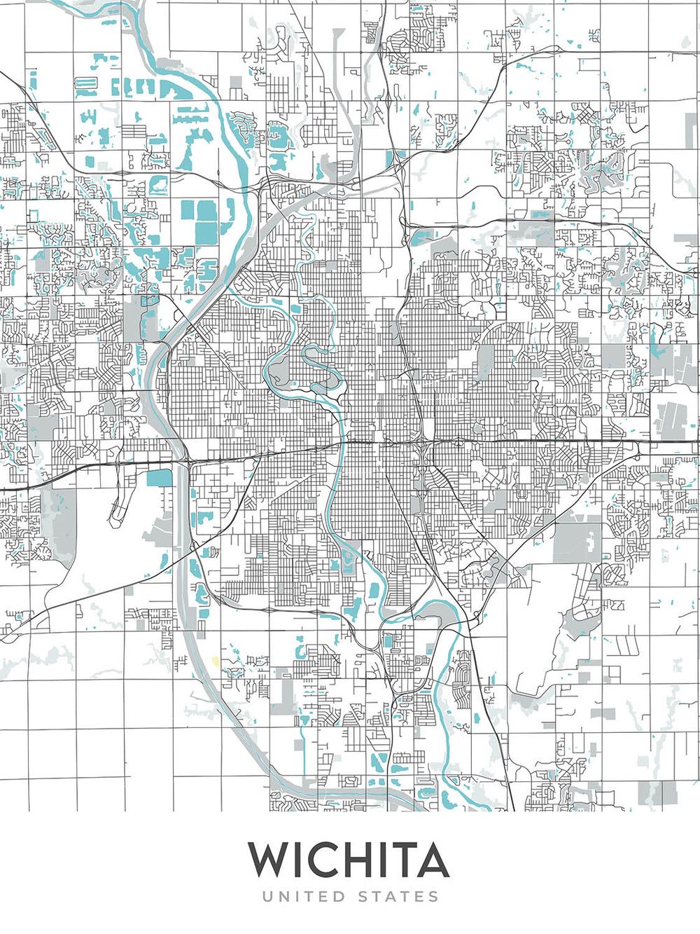 Esta creación original de The Unique Maps Co. presenta una cartografía única, un diseño moderno y una llamativa paleta de colores que complementará la decoración de cualquier hogar u oficina. El mapa está impreso en papel de alta calidad y está disponible en una variedad de tamaños para satisfacer sus necesidades. Si es un residente local, un visitante o simplemente un amante de los mapas, este mapa de Wichita es imprescindible.