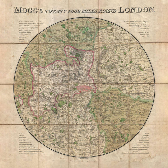 Antiguo mapa de Londres: Las 24 millas de Mogg alrededor de Londres, 1820