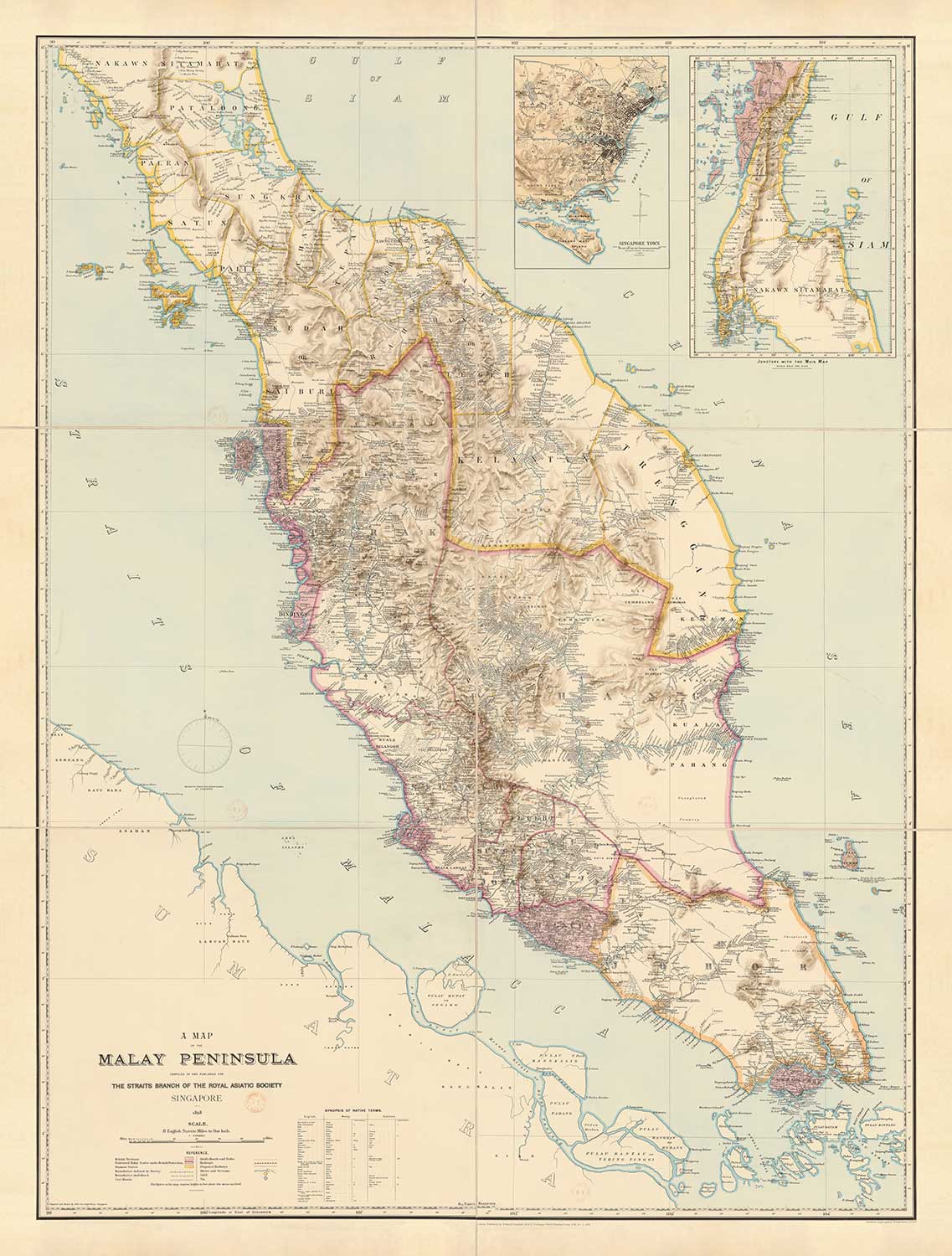 En 1898, la península malaya estaba experimentando cambios significativos. Los británicos habían establecido el control sobre la mayor parte de la región y trabajaban para modernizar y desarrollar la zona. El mapa refleja este periodo de transición, con la construcción de nuevas carreteras, ferrocarriles y otras infraestructuras.